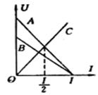 如图所示,直线A为电源a的路端电压与电流的关系图像,直线B为电源b的路端电压与电流的关系图像,直线C为一个电阻R的两端电压与电流的关系图像,将这个电阻R分别接到a,b两电源上,那么![]()