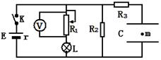 如图所示电路,电源电动势为E,内阻为r,闭合电键K,水平放置的平行板电容器中一带电微粒恰好保持静止。当滑动变阻器滑片向上滑动时,下列表述正确的是:![]()