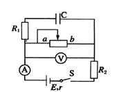 如图所示,电源的电动势和内阻分别为E、r,在滑动变阻器的滑片P由a向b移动的过程中,电流表、电压表的示数变化情况为( )![]()