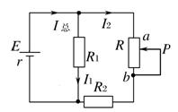 是两阻值固定的电阻.当可变电阻R的滑片向a端移动时,通过R1的电流I1和通过R2的电流I2将发生的变化是![]()