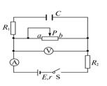 在如图所示的电路中电源电动势为E,内电阻为r.闭合开关S,待电流达到稳定后,电流表示数为I,电压表示数为U,电容器C所带电荷量为Q,将滑动变阻器P的滑动触头, 从图示位置向a一端移动一些,待电流达到稳定后,则与P移动前相比![]()