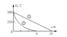 构建和谐、节约型社会深得民心,这体现于生活的方方面面,自动充电式电动车就是很好的一例.在电动车的前轮处装有发电机,发电机与蓄电池连接.当骑车者用力蹬车或电动自行车自动滑行时,自行车就可以连通发电机对蓄电池充电,将其它形式的能转化成电能储存起来.某人骑车以500 J的初动能在粗糙的水平面上滑行,第一次关闭自动充电装置让车自由滑行,其动能随位移变化的关系如图线①所示;第二次启动自动充电装置,其动能随位移变化的关系如图线②所示.设两种情况下自行车受到的阻力(包括空气阻力和摩擦阻力等)恒定不变,则下列说法中正确的是( )![]()