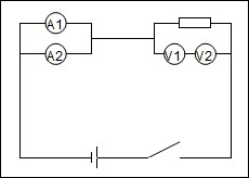 如图实甲所示,电压表V1、V2串联接入电路中时,示数分别为6 V和4 V,当只有电压表V2接入电路中时,如图实-7-14乙所示,示数为9 V,电源的电动势为( )![]()