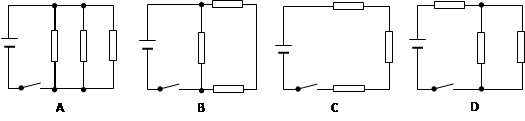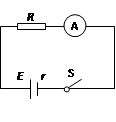 在下图所示的电路中,电阻R =2.0 Ω,电源的内电阻r=1.0 Ω,不计电流表的内阻.闭合开关S后,电流表的示数I=0.5 A,则电源的电动势E等于![]()