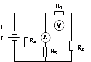 如图所示电路中,当变阻器R的滑动片P向下滑动时,电压表V和电流表A的示数![]()