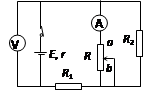 电动势为E、内阻为r的电源与定值电阻R1、R2及滑动变阻器R连接成如图所示的电路。当滑动变阻器的触头由中点滑向b端时![]()