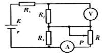 在图所示的电路中,电源电动势为E、内电阻为r。在滑动变阻器的滑动触头P从图示位置向下滑动的过程中:( )![]()
