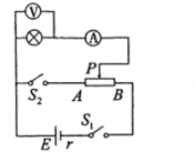 如图所示,闭合S1断开S2调整滑动触头P使灯炮L正常发光,此时滑动变阻器的PB部分的电阻大于电源内阻r。如果再闭合S2则 ![]()