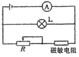 .已知磁敏电阻在没有磁场时电阻很小,有磁场时电阻变大,并且磁场越强阻值越大.为探测磁场的有无,利用磁敏电阻作为传感器设计了如图所示电路,电源的电动势E和内阻r不变,在没有磁场时调节变阻器R使电灯L正常发光,若探测装置从无磁场区进入强磁场区.则