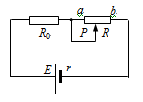 如图所示,电动势为E、内阻为r的电池与定值电阻R0、滑动变阻器R串联,已知R0=r,滑动变阻器的最大阻值是2r。当滑动变阻器的滑片P由a端向b端滑动时,下列说法中正确的是( )![]()