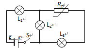 在如图所示的电路中,Rt为半导体热敏电阻,闭合开关,灯泡L1、L2、L3的亮度相同.当Rt处的温度升高时,小灯泡的亮度变化情况是![]()