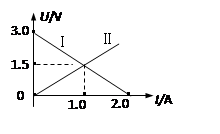 如图所示的U—I图像中,直线I为某电源的路端电压与电流的关系,直线Ⅱ为某一电阻R的伏安特性曲线,用该电源直接与电阻R连接成闭合电路,由图像可知![]()