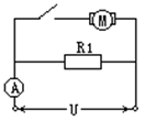 如图所示,电阻R1=20Ω,电动机的绕组R2=10Ω。当电键打开时,电流表的示数是0.5A,当电键合上后,电动机转动起来,电路两端的电压不变,电流表的示数I和电路消耗的电功率应是![]()