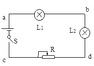 如图所示的电路中,电源电动势为6V,当开关S接通后,灯泡L1和灯泡L2都不亮,用电压表测得各部分电压是Uab=0V,Uad=0,Ucd=6V,由此可断定( )![]()