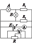 电动势为E、内阻为r的电源与定值电阻R1、R2及滑动变阻器R连接成如图所示的电路,当滑动变阻器的触头由中点滑向b端时,下列说法正确的是![]()