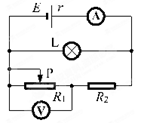 如图所示的电路中,电源的电动势E和内阻r恒定不变,变阻器R1的滑片P处在如图位置时,电灯L正常发光。现将滑片P向右移动,则在该过程中( )![]()