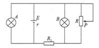 如图所示,电源的电动势为E,内阻为r,R0为定值电阻, R为变阻器,已知R0>r。为使R0上消耗的电功率最大,应将变阻器阻值调整到 ( ) ![]()