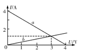 如图,a、b分别表示一个电池组和一只电阻的伏安特性曲线。则以下说法正确的是 ( )[来源:学.科.网Z.X.X.