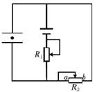 如图所示,电动势为E、内阻为r的电池与定值电阻R0、滑动变阻器R串联,已知R0=r, 滑动变阻器的最大阻值是2r.当滑动变阻器的滑片P由a端向b端滑动时,下列说法中正确的是( )![]()