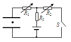 电源和一个水平放置的平行板电容器、二个变阻器R1、R2和定值电阻R3组成如图所示的电路。当把变阻器R1、R2调到某个值时,闭合开关S,电容器中的一个带电液滴正好处于静止状态。当再进行其他相关操作时(只改变其中的一个),以下判断正确的是![]()