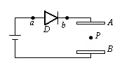 示,D是一只二极管,它的作用是只允许电流从a流向b,不允许电流从b流向a ,平行板电容器AB内部原有电荷P处于静止状态,当两极板A和B的间距稍增大一些的瞬间(两极板仍平行),P的运动情况将是( )![]()