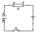 如图所示,由一个由电池、电阻R、开关S与平行板电容器组成的串联电路,开关闭合.在增大电容器两极板间距离的过程中( )![]()