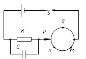 如图所示,将一根粗细均匀的电阻丝弯成一个闭合的圆环,接入电路中,电路与圆环的O点固定,P为与圆环良好接触的滑动头。闭合开关S,在滑动头P缓慢地由m点经n点移到q点的过程中,电容器C所带的电荷量将![]()