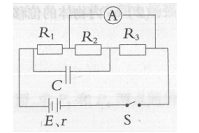 如图所示,电源电动势为4V,内阻为1Ω,电阻R1=3Ω,R2=R3=4Ω,电流表的内阻不计,闭合S电路达稳定状态后,电容器两极间电压为( )![]()