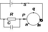 .如图所示,将一根粗细均匀的电阻丝弯成一个闭合的圆环,接入电路中,电路与圆环的O点固定,P为与圆环良好接触的滑动头。闭合开关S,在滑动头P缓慢地由m点经n点移到q点的过程中,电容器C所带的电荷量将![]()