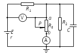 右图所示的电路中,当滑动变阻器R2的滑动触头P向下滑动时![]()