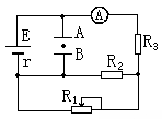 如图所示电路中,电源电动势为E、内阻为r,电阻R2、R3为定值电阻,R1为滑动变阻器,A、B为电容器的两个极板。当滑动变阻器R1处于某位置时,A、B两板间的带电油滴静止不动。则下列说法中正确的是 ( )![]()
