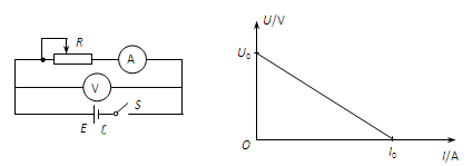 某同学利用如图所示的电路测量电源的电动势和内电阻。他利用测量出来的几组电压和电流值画出了U—I图线。根据图线求出的电源电动势E=____________,电源的内电阻r=_______________。