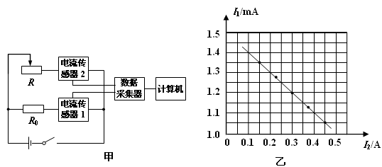 (1)采用如图甲所示的电路,测定电流表G2的内阻,得到电流表G1的示数I1、电流表G2的示数I2如下表所示: