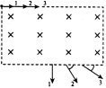 三个速度大小不同而质量相同的一价离子,从长方形区域的匀强磁场上边缘平行于磁场边界射入磁场,它们从下边缘飞出时的速度方向见右图。以下判断正确的是( )![]()