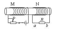 如图,线圈M和线圈N绕在同一铁芯上。M与电源、开关、滑动变阻器相连,P为滑动变阻器的滑动端,开关S处于闭合状态,N与电阻R相连。下列说法正确的是 ( )![]()
