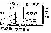 如图所示为一种利用电磁原理制成的充气泵的结构示意图,其工作原理类似打点计时器。当电流从电磁铁的接线柱a流入,吸引小磁铁向下运动时,下列选项中正确的是( )![]()