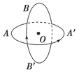 两个绝缘导体环AA′、BB′大小相同,环面垂直,环中通有相同大小的恒定电流,如图所示,则圆心O处磁感应强度的方向为(AA′面水平,BB′面垂直纸面) ( ) ![]()