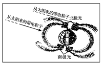 我国第21次南极科考队在南极观看到了美丽的极光.极光是来自太阳的高能带电粒子流高速冲进高空稀薄大气层时,被地球磁场俘获,从而改变原有运动方向,向两极做螺旋运动,如图所示.这些高能粒子在运动过程中与大气分子或原子剧烈碰撞或摩擦从而激发大气分子或原子,使其发出各种颜色的光.地磁场的存在,使许多宇宙粒子不能达到地面而向人烟稀少的两极地区偏移,为地球生命的诞生和维持提供了天然的屏障.科学家发现并证实,向两极做螺旋运动的这些高能粒子的旋转半径是不断减小的,这主要与下列哪些因素有关( )![]()