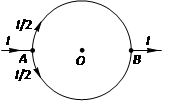 如图所示,电流从A点分两路通过对称的半圆支路汇合于B点,在圆环中心O处的磁感应强度 ( )![]()