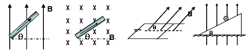 如图所示,在倾角为θ的光滑斜面上,垂直纸面水平放置一根长为L,质量为m的通电直导线,电流方向垂直纸面向里,欲使导线静止于斜面上,则外加磁场的磁感应强度的大小和方向可以是( )