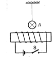 如图所示,均匀绕制的螺线管水平放置,在其正中心的上方附近用绝缘绳水平吊起通电直导线A,A与螺线管垂直,A导线中的电流方向垂直纸面向里,开关S闭合,A受到通电螺线管磁场的作用力的方向是( )![]()