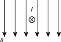 如图所示,在匀强磁场中有一通电直导线,电流方向垂直纸面向里,则直导线受到安培力的方向是:( )![]()