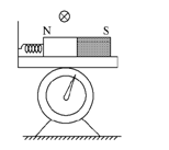 如图所示,台秤上放一光滑平板,其左边固定一挡板,一轻质弹簧将挡板和一条形磁铁连接起来 ,现在磁铁上方中心偏左位置固定一导体棒,当导体棒中通以如图所示的电流后,以下说法正确的是( )