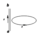 竖直导线ab与水平面上放置的圆线圈隔有一小段距离,其中直导线固定,线圈可自由运动,当同时通以图示方向的电流时(圆线圈内电流从上向下看是逆时针方向电流),则从左向右看,线圈将( )