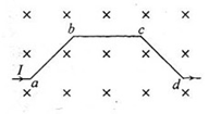 。流经导线的电流为I,方向如图中箭头所示。导线段abcd所受到的磁场的作用力的合力![]()