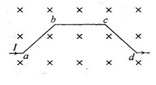 。流经导线的电流为I,方向(从a流入,从d流出)如图中箭头所示。导线段abcd所受到的磁场的作用力的合力 ( )