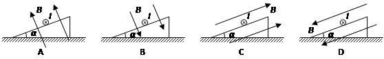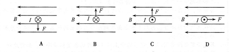 一段长0.2 m,通过2.5 A电流的直导线,关于在磁感应强度为B的匀强磁场中所受安培力F的情况,正确的是