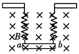 如图所示,金属细棒质量为m,用两根相同轻弹簧吊放在水平方向的匀强磁场中,弹簧的劲度系数为k,棒ab中通有稳恒电流,棒处于平衡,并且弹簧的弹力恰好为零.若电流大小不变而方向相反,则( )![]()