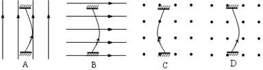 如图,金属棒AB用软线悬挂在磁感应强度为B,方向如图所示的匀强磁场中,电流由A向B,此时悬线张力为T,欲使悬线张力变小,可采用的方法有…………………( )![]()