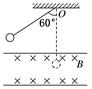 如图所示,一带电小球质量为m,用丝线悬挂于O点,并在竖直平面内摆动,最大摆角为60°,水平磁场垂直于小球摆动的平面,当小球自左方摆到最低点时,悬线上的张力恰为零,则小球自右方摆到最低点时悬线上的张力为 ( )![]()
